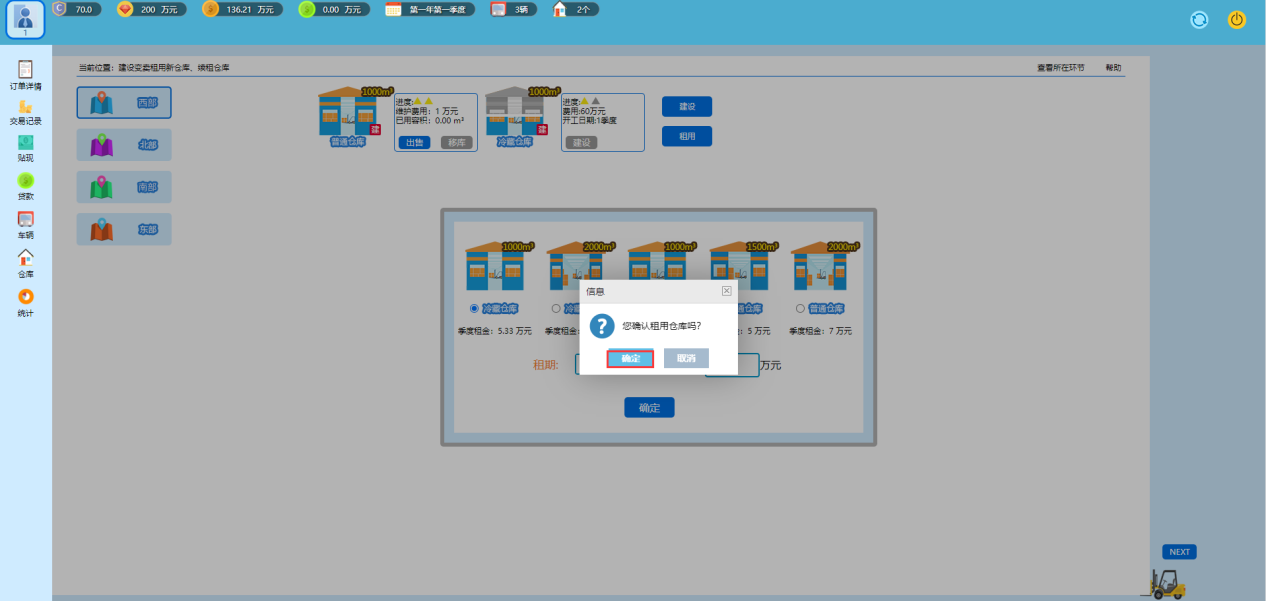 4.贷款功能:系统支持短期、中期和担保贷款等多种贷款方式,帮助学生了解金融借贷在物流企业经营中的作用。