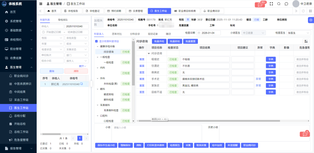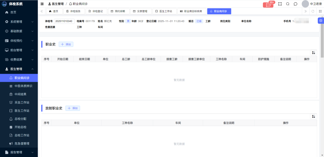 中卫君康职业病体检管理系统V1.0