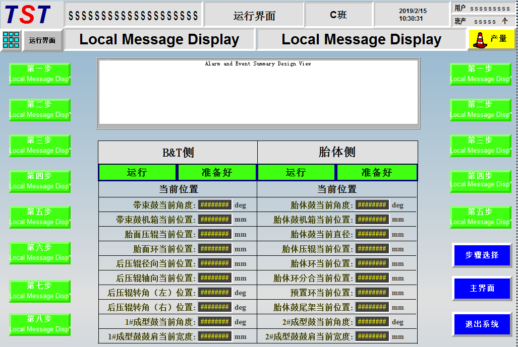 赛象智能化多鼓工程子午胎成型机系统控制软件V1.0运行在Factory Talk View Studio V8.0软件和RSLogix5000 V28支持平台,可以登录在工业控制计算机、PC机和其他服务器,能够在设备运行期间通过网络总线对多鼓子午工程胎成型机的贴合、辊压、成型以及供料过程的各自动化组件进行信息通讯,实施数据采集、实时监控和生产信息管理。为生产操作和管理人员提供运行参数实时显示,在人机界面上进行工艺参数设定、存储、修改功能,以及越限报警,历史数据提取等功能。