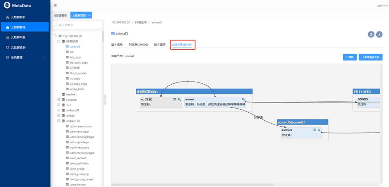 血缘关系和影响分析支持新增、修改、删除、查看血缘关系。