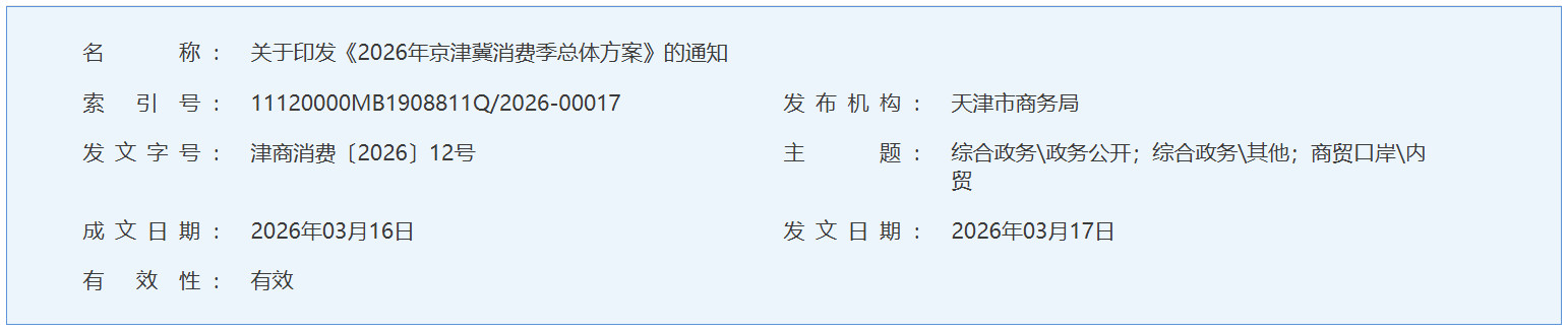 关于印发《2026年京津冀消费季总体方案》 的通知
