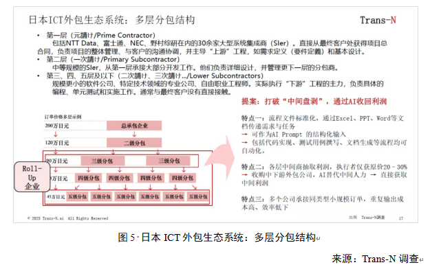 日本在人工智能技术和应用领域的落后,背后的关键原因仍在于对“超级全球化”时代,其IT产业成功的路径依赖。作为传统技术强国和服务采购大国,即非IT行业的日本企业倾向于将IT业务外包给咨询公司或IT大手公司,而不是建立自身的过硬的IT团队。