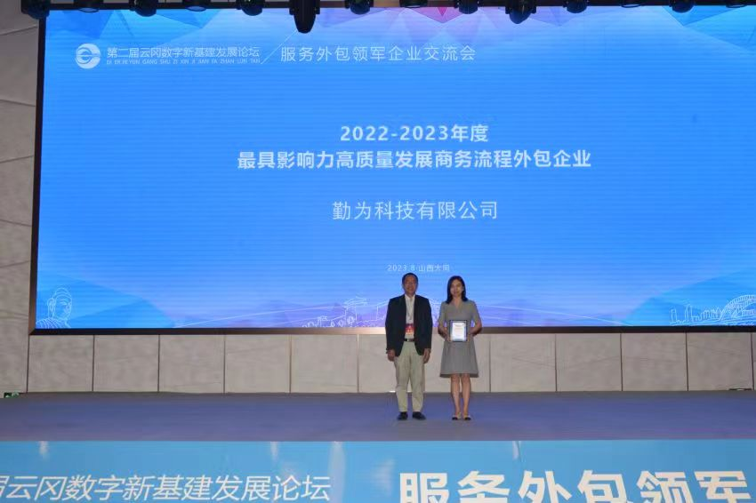 Industry research8月25日,由外包网携手鼎韬产业研究院发起的“2022-2023年度最具影响力单项优秀企业”研究报告于2023大同市服务外包领军企业交流会上正式揭晓。