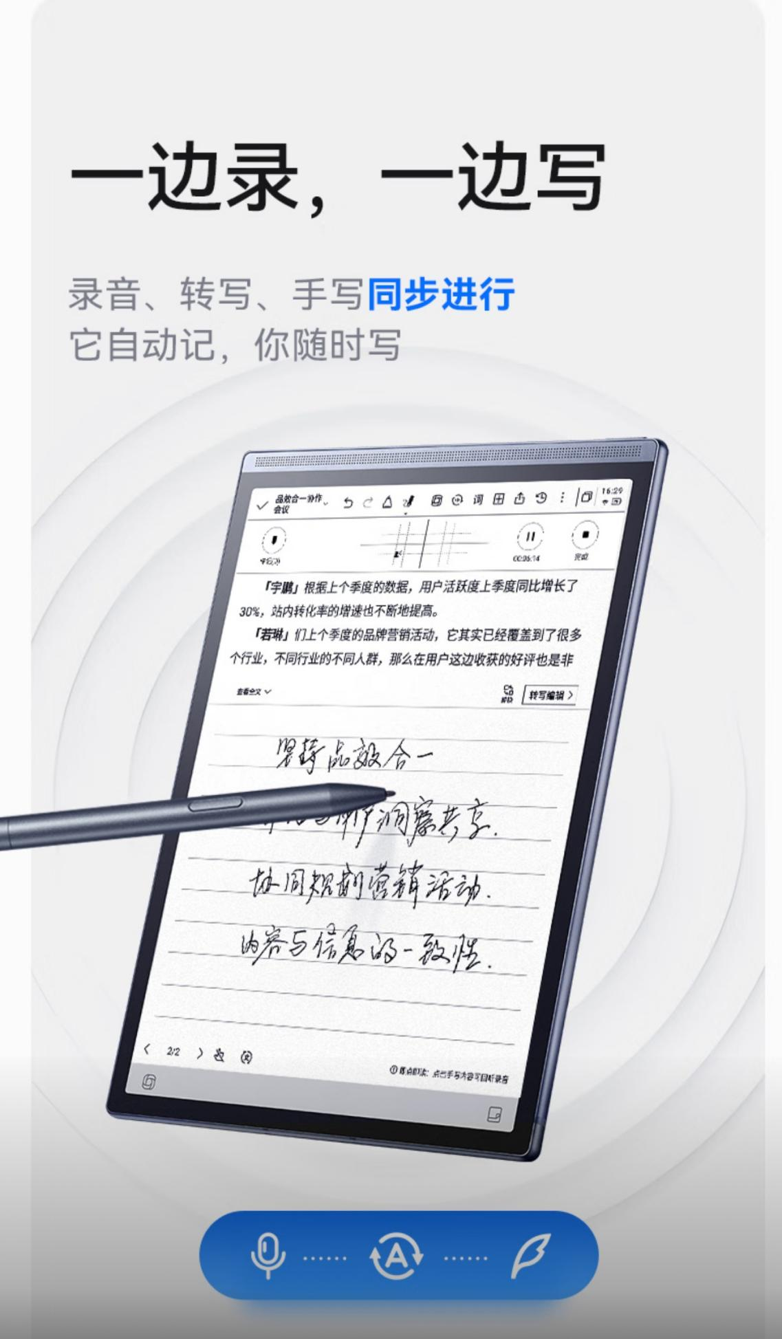 设备还新增了读写客手机端拍照插入笔记功能,实现了录音转写、手写、拍照三合一的记录方式。