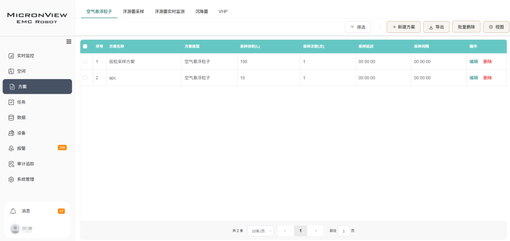软件为用户提供实时监控、空间、方案、任务、数据、设备、报警、审计追踪、系统设置等功能模块。
