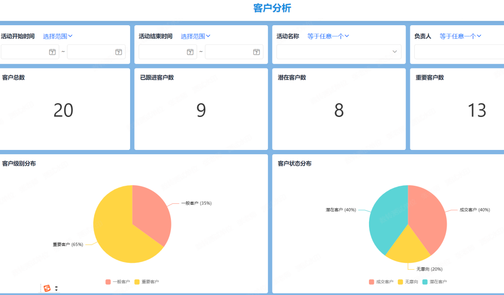实现客户细分:依据行业、规模、购买力等不同标准对客户分类,便于开展精准营销。
