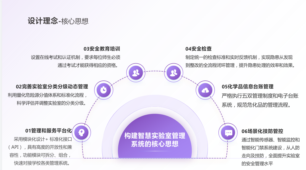 智慧实验室综合管理平台是一套集信息化、智能化与标准化于一体的全流程管理平台,旨在全面提升高校、科研院所及企业实验室的安全管理水平、资源利用效率与科研支撑能力。该系统以“数据驱动、智能管控、闭环管理”为核心理念,打破传统实验室管理中信息孤岛、流程割裂、响应滞后等痛点,构建覆盖实验室全生命周期、全要素、全场景的一体化数字治理体系。