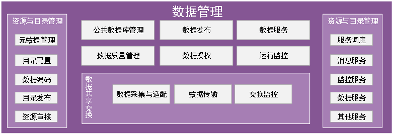 主要功能包括数据采集管理、元数据管理、目录管理、数据审核、数据清洗、数据交换等几大核心功能,分别对应数据资源从规范定义、梳理编目、汇总管理到共享、公开整个生命周期的每个重要环节。