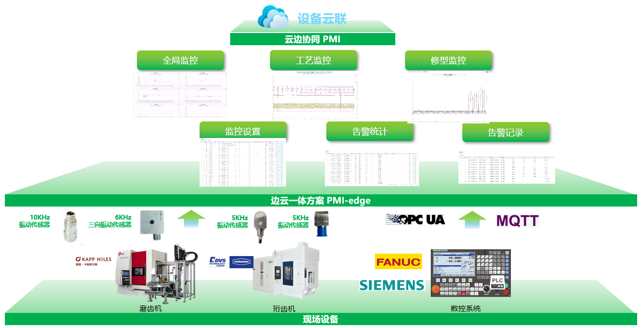 智能过程监控PMI是一套专为精密制造行业打造的工业设备“神经感知系统”,通过软硬件一体化设计,深度采集机床数控系统的核心工艺参数,实时捕捉设备负载波动与温度变化,结合机床关键点位振动数据,将生产过程的“黑箱数据”透明化,通过精准监测每一工步的加工状态,有效拦截在制品质量缺陷,为工艺优化提供数据支撑,可有效预警潜在的设备故障 。