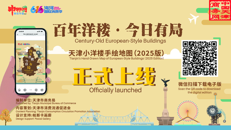 为进一步发挥上合组织天津峰会后续效应,强化商文旅融合发展,讲好天津故事,擦亮“洋楼”历史文化名片,市商务局发布《百年洋楼今日有局—天津小洋楼手绘地图(2025版)》,重点聚焦五大道、意式风情区、解放北路、中心花园四大片区,筛选约50家标志性小洋楼商户,利用彩色手绘等形式设计精美宣传手册,为市民游客提供特色化、精准化消费攻略。